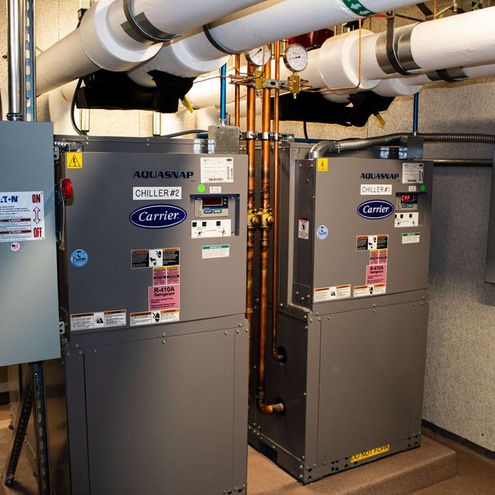 Hayes Mechanical provided complete mechanical systems installation for (2) 110 Ton screw chillers. Work included project management, equipment removal and new equipment setting, piping installation, system tie-in, and start-up.